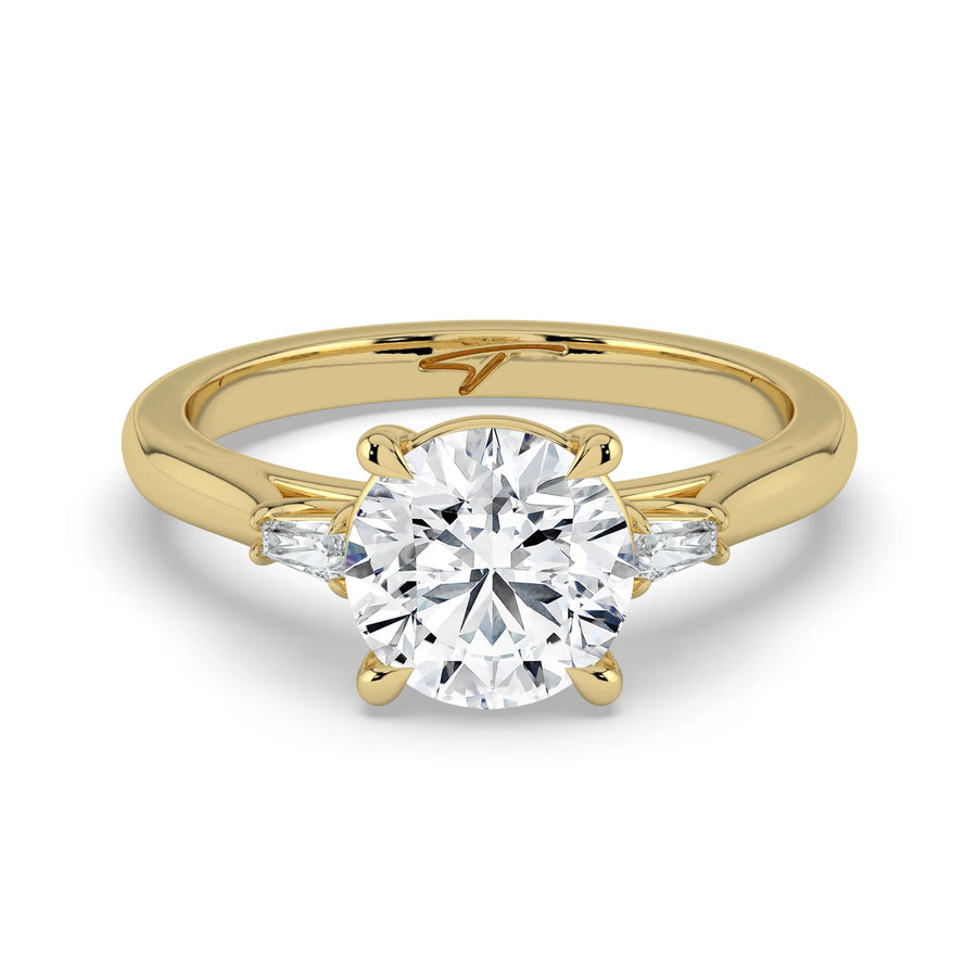 Also known as a trilogy ring, this setting features a central diamond flanked by two side stones. The symbolism is what makes it so meaningful. The three stones represent the past, present, and future of your relationship. This style is admired for its sentiment, its ability to mix and match diamond shapes, and the added sparkle it creates compared to a solitaire.