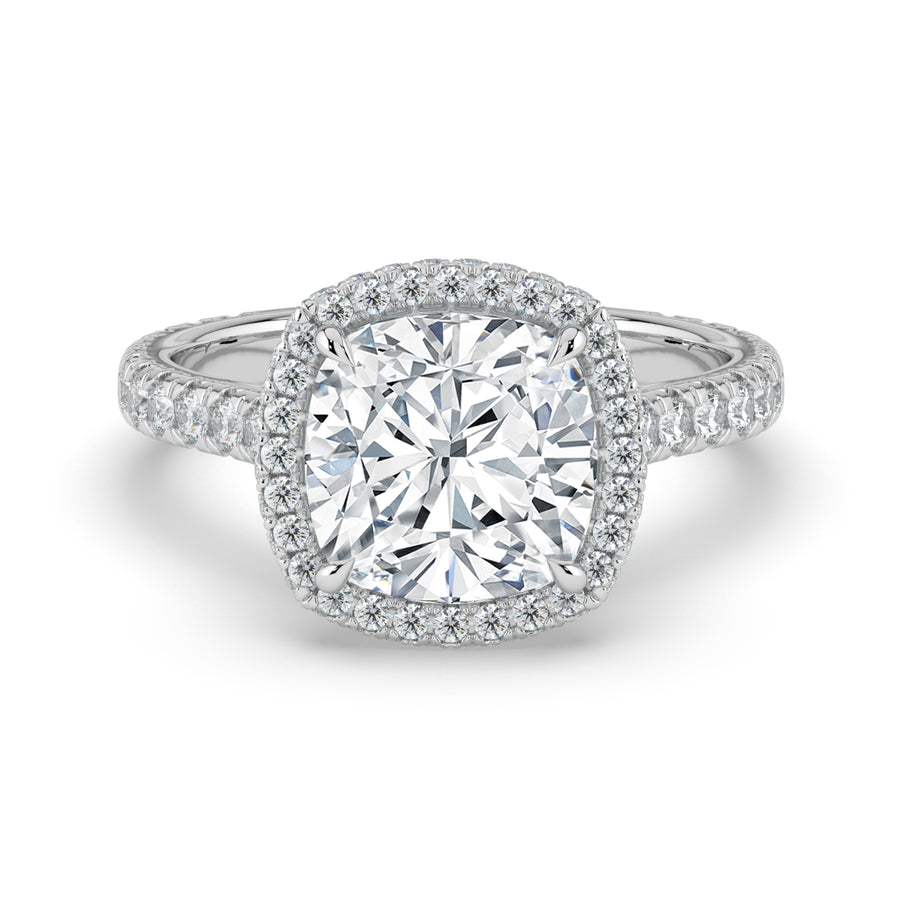 Derived from the French word meaning paved, pavé settings feature tiny diamonds set closely together along the band to create a continuous shimmer. It adds texture and luxury without competing with the centre stone. This style is appreciated for its delicate shine and refined, diamond encrusted look.