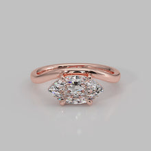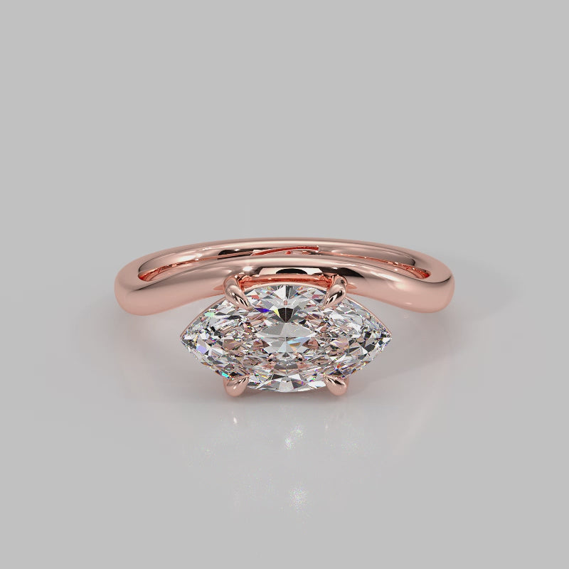 The Solis Ring showcases a horizontally set marquise-cut diamond, suspended above a softly curved band for a look that is both refined and effortlessly elegant.